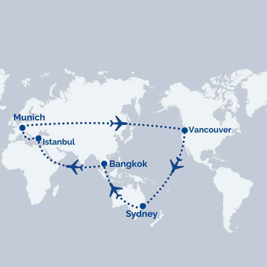 Sydney → Bangkok → Istanbul → Munich→ Istanbul [Transit] → Vancouver → Sydney