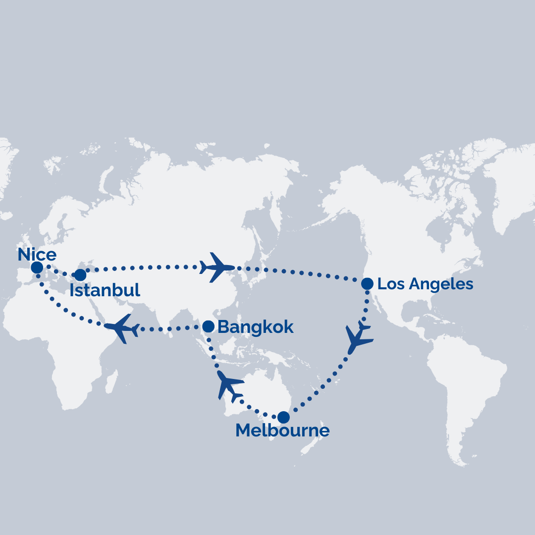 Melbourne → Bangkok → Istanbul [Transit] → Nice → Istanbul→ Los Angeles → Melbourne